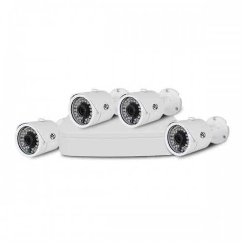 Комплект IP видеонаблюдения для самостоятельной установки ATIS Starter Kit IP 4ext включает: 1 IP видеорегистратор и 4 уличные цилиндрические IP видеокамеры Full HD разрешения (1080P), 1 разветвитель питания (для подключения 4 устройств-потребителей), 2 кабеля RJ-45+питание по 20м, 2 кабеля RJ-45+питание по 30м, 1 блок питания, 1 коммутатор на 8 портов RJ45 100/100M.