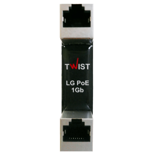 Twist LG-PoE-1Gb-2U – компактный (81 x 18 x 28 мм) модуль, предназначенный для обеспечения надежной и высокоэффективной защиты Ethernet порта различной сетевой техники от высоковольтных импульсных перенапряжений в линиях связи, вызванных электростатическими зарядами, грозовыми разрядами, сильными электромагнитными полями, высоковольтными импульсными наводками и перепадами питающего напряжения. Защита распространяется по порт 10/100/1000 Base-T, в котором идет защита 1 по восьмой проводник. В качестве интерфейсов для подключения предложен разъем RJ-45. Время необходимое на срабатывание не превышает и 5 нс.