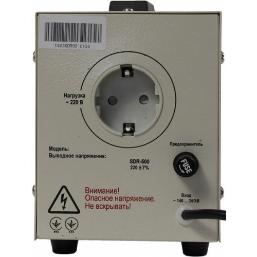 Стабилизатор напряжения SDR-500 - это хороший выбор для защиты от неправильного напряжения газового или твердотопливного котла отопления, но так же может использоваться для любых других приборов суммарной мощностью не более 350Вт.