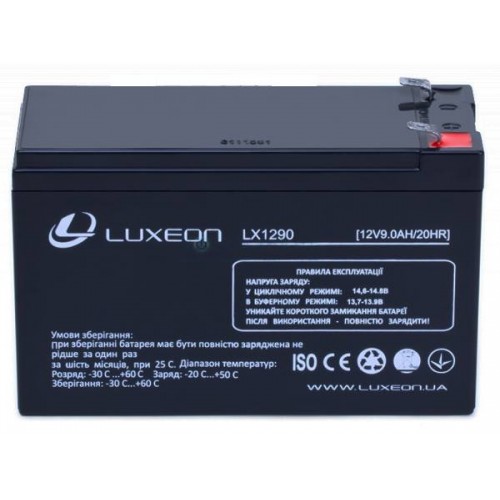 Luxeon LX1290 - свинцово-кислотные, герметичные, необслуживаемые аккумуляторные батареи. Крепление: горизонтальная установка на поверхности. Разряжайте батарею один раз в месяц. После разряда батарею необходимо полностью зарядить.