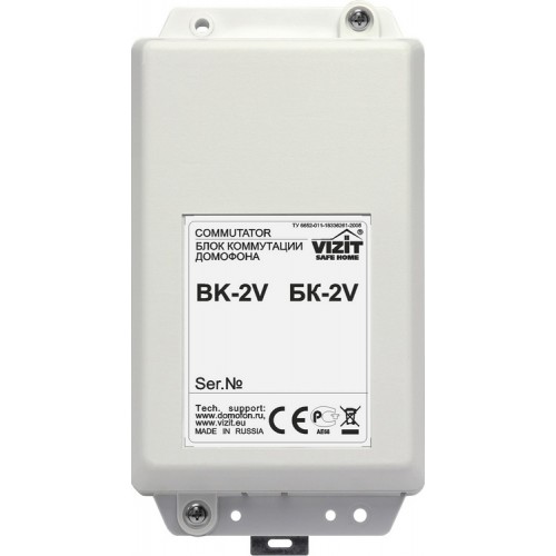 Блок коммутации VIZIT БК-2V используется там, где есть необходимость в подключении двух видеодомофонов. Например, у Вас большой дом с множеством комнат и Вы, услыхав звонок, не успеваете дойти в другой конец дома, что б нажать клавишу на переговорной панели. В таком случае, лучший вариант для Вас - это установка 2-х видеодомофонов.