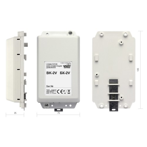 Работает с моделями видеодомофонов серии 400 производителя VIZIT. Он занимает совсем немного места (ширина - 75 мм, высота - 135 мм) и весит всего 100 г, что несколько упрощает установку.