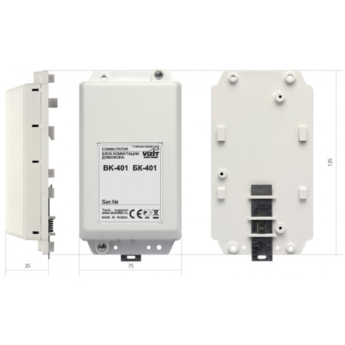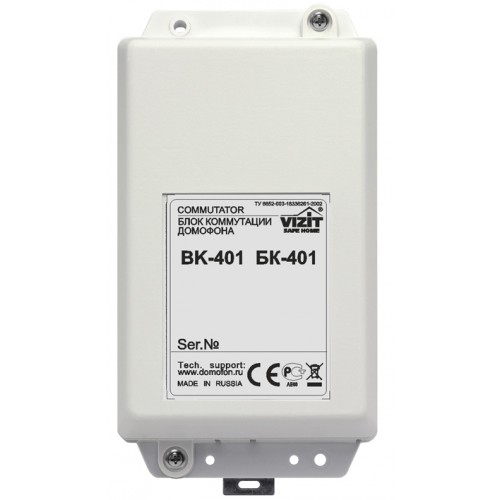 Блок коммутации БК-401 производителя VIZIT используется непосредственно вместе с блоком управления БУД-420Р. Блок коммутации в составе "VIZIT 8+1", "VIZIT 8+2" применяется с целью защиты и ограничения нежелательного доступа в многоквартирные дома либо огороженную придомовую территорию. В первую очередь, устройство предназначено для перехода между линиями связи и видеосигналами, установленными в подъезде и блоками управления, расположенными снаружи и в подъезде.
