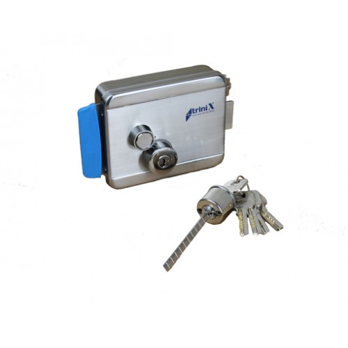 TRX Fass Steel – накладной электромеханический замок, универсальный, для всех типов дверей, корпус из нержавейки, блокировка кнопки ключом изнутри, 12В. Выдвижного ригеля нет, работает только как защёлка, с возможностью дистанционного открытия, что позволяет использовать его совместно с домофоном (наиболее часто устанавливается на калитки в частном секторе) или контроллером управления доступом (для входа по карте или бесконтактному брелку RFID).