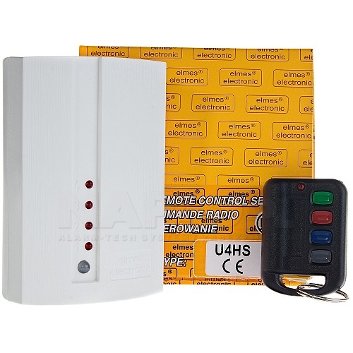 Комплект состоит из супергетеродинного приемника U4HR и одного брелка-передатчика с четырьмя кнопками.Комплект предназначен для радиоуправления системами охранной сигнализации для установки задержки входа, постановки/ снятия с охраны и контроля доступа. Алгоритм кодирования KEELOQ® с динамическим кодом обеспечивает высокий уровень защиты сигналов. Емкость памяти приемника - 112 передатчиков. Существует ограничение - 20 передатчиков, в некоторых рабочих режимах (подробнее см. паспорт к U4-HS).