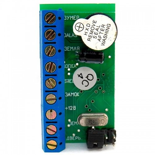 Имеются клеммы для включения электропитания и для открывания электрического замка. При этом промежуток времени, на который открывается замок, может настраиваться в пределах от 0 до 220 секунд. Программирование параметров устройства открывания происходит при помощи перемычек, установленных в соответствующее положение.