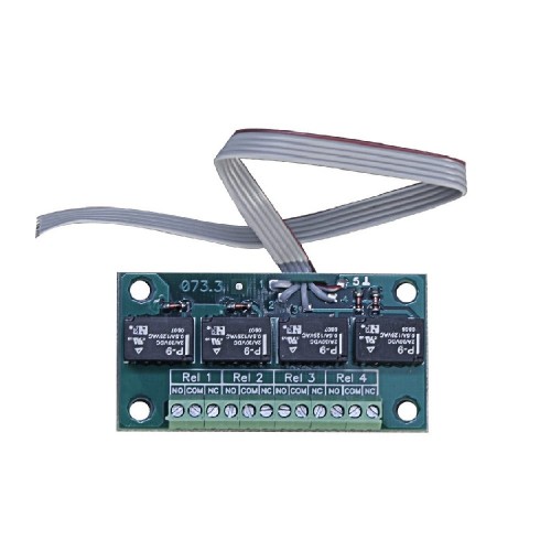 Блок реле может использоваться для передачи сигналов на ПЦН, управления сигналами оповещения и т.п. Состоит из восьми реле, каждое из которых может функционировать как нормально замкнутое или нормально разомкнутое в зависимости от подсоединения к соответствующим контактам клемников.