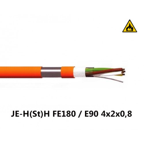 JE-H(St)H FE180/E90 4x2x0,8 - это огнестойкий безгалогенный кабель, который может функционировать в условиях пожара в течение 90 минут. Применяется данный кабель в системах пожарной сигнализации, дымоудаления, пожаротушения, которые требуют функционирования во время пожара. Используется в местах массового скопления людей (метро, тоннели, торговые центры, больницы, аэропорты, отели, офисные здания и т.п.)