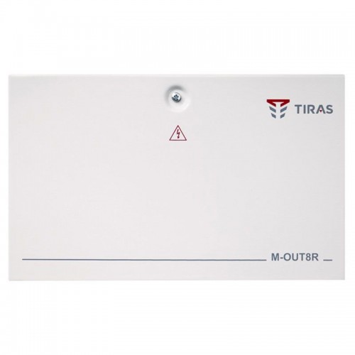 Модуль M-OUT8R используется для расширения набора релейных выходов охранных систем под управлением ППК Орион NOVA и Tiras PRIME. В конструкции устройства 8 реле с перекидными контактами, клеммы для подключения системной шины RS485, основного и резервного питания. Возле каждого реле размещён индикатор состояния. Кроме того, есть общие индикаторы подачи питания, присутствия проводного соединения по RS-485 и обмена по нему данными.