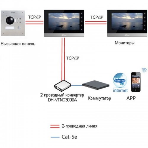 2-Проводная технология передачи данных. На базе конвертера, который позволяет подключать IP домофоны и вызывные панели компании Dahua вдоль двухпроводной или коаксиальной линии, даже в аналоговой среде, или в месте с ограниченной инфраструктурой. Основным преимуществом является то, что вам нужно всего лишь один двух жильный кабель для передачи данных и питания.