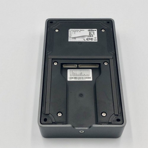К 2 тревожным входам подсоединяются устройство обратной связи и кнопка открытия, а также имеется выход реле замка, встроенный блок контроля открытия двери, тампер и разъем RS-485. Ethernet сеть с интерфейсом RJ45 (10M/100M) применяет протокол TCP/IP. Каждый абонент может через сетевой коммутатор подсоединить до 6 внутренних мониторов. Электроснабжение панели DC 12V, мощность потребления в ждущем режиме 1W и в рабочем - 7W. Корпус из алюминия темно-серого цвета располагает температурой эксплуатации в пределах -40°C~+60°C, защитой от влаги IP65 и от механического воздействия IK08, позволяющие применять панель в сложных условиях. Монтаж панели совершается накладным способом.