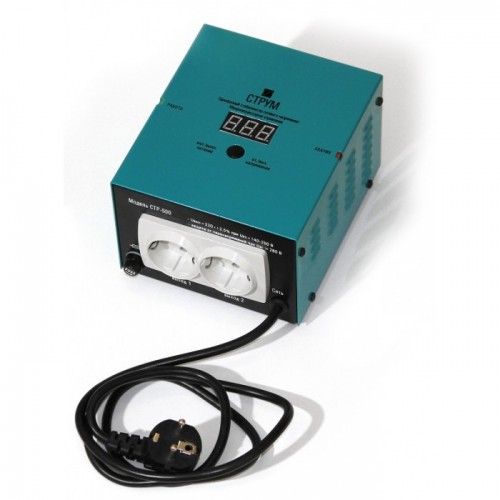 Стабилизатор напряжения Струм СТР-500 — предназначен для работы с бытовыми и промышленными электроприборами мощностью до 500 Вт от сети переменного тока 220 В / 50 Гц.