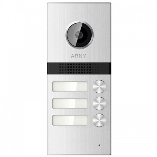Трехканальная вызывная панель Arny AVP-NG523 в ударопрочном исполнении реализовывает все нужные функции: звонок на 3 домофоны, двусторонние переговоры и трансляцию изображения на дисплей видеодомофонов. На бумажном вкладыше таблички возле кнопки пишется номер квартиры, фамилия владельца или название офиса.