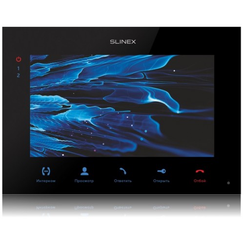 Домофон SQ-07MT производителя Slinex с 7-дюймовым цветным экраном сенсорного типа относится к устройствам бизнес класса и устанавливается в приватных или офисных апартаментах. Вероятно 4-проводное подключение 2 вызывных панелей и 2 видеокамер. Поддерживается связь в режиме интерком с 3 домофонами.