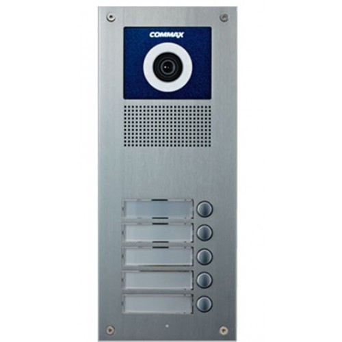 Панель Commax DRC-5UC имеет классический внешний вид. Видеокамера, под ней расположена сеточка, высеченная из корпуса, за которой находится динамик, ниже 5 кнопок вызова, рядом с каждой можно разместить номер квартиры, офиса или название фирмы.