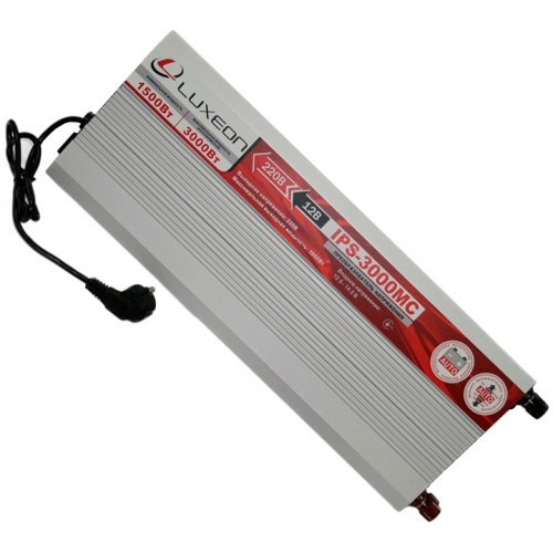 Инвертор LUXEON IPS-3000MC - отличный незаменимый прибор когда необходимо запитать любую офисную или домашнюю технику, которой для стабильной работы не требуется чистая синусоида напряжения. Проще говоря данный прибор представляет собой мобильную электросеть с напряжением 220 В. Модель обладает возможностью заряда аккумулятора. Когда аппарат работает от сети он находится в режиме ожидания, а когда происходит сбой и электричество выключается, прибор переходит в режим работы от батареи. Так экономится аккумулятор. Несомненно данный инвертор окажет Вам незаменимую службу в критический момент.