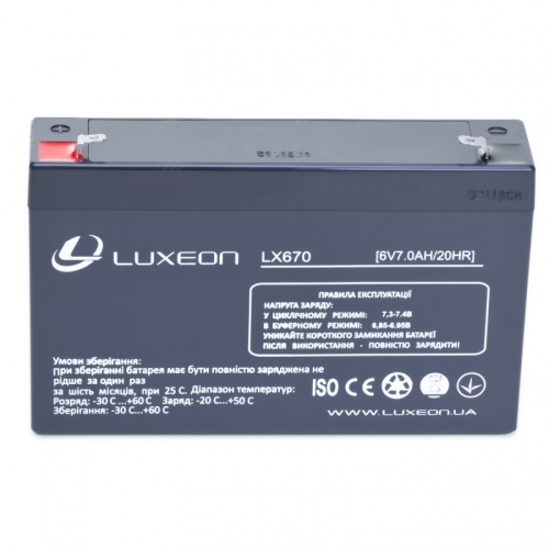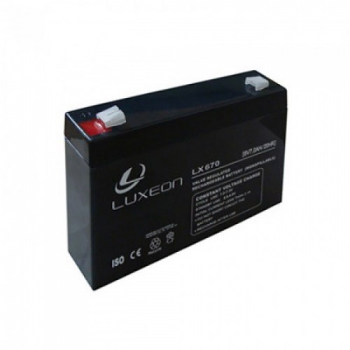 Аккумуляторная батарея Luxeon LX 670 с емкостью 7Ah, 6В, предназначена для применения в разного рода аппаратах Она создана по технологии AGM и отличается чрезвычайно высокой устойчивостью к любым вибрациям и перепадам температуры.