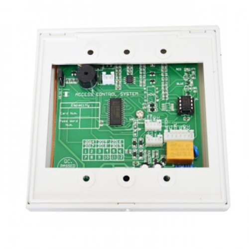 Интегрированный 125KHz считыватель с дальностью восприятия до 12 см. Внутренний зуммер и индикация из трех светодиодов. Три порядка открывания дверей: кодом, картой или кодом + карточкой. Электроснабжение: DC 12В. Потребляемый ток: ≤ 60 мА.