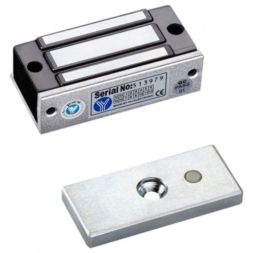 Электромагнитный замок YM-60 состоит из ответной планки, которая крепится непосредственно на двери и с замка, который устанавливается на дверную коробку. Благодаря подаче питания в 12 Вольт происходит подмагничивания планки замком и, как следствие, закрытие дверей. При отключении питания замок автоматически открывается.