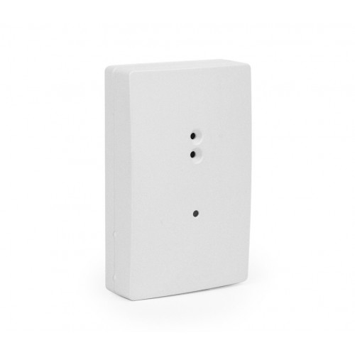 Электропитание: 3 V от батарейки типа CR123.Корпус изготовлен с прочного пластика белого цвета, что предусматривает эксплуатацию изделия внутри здания при диапазоне температур от -10°С до +55°С.