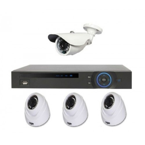 | Комплектация: | 1 видеорегистратор, 1 уличная камера, 3 внутренних камеры, 1 разветвитель питания, 4 кабеля видео+питание по 20м, 1 блок питания |