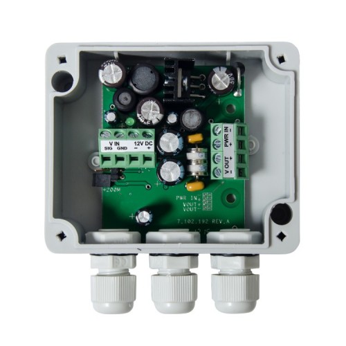 Передатчик TWIST-PwA-HD TX IP в герметичном корпусе использует технологию PwA для передачи черно-белых или цветных композитных видеосигналов формата D1, 960H, HD-TVI, HD-CVI, AHD на расстояние до 500м.