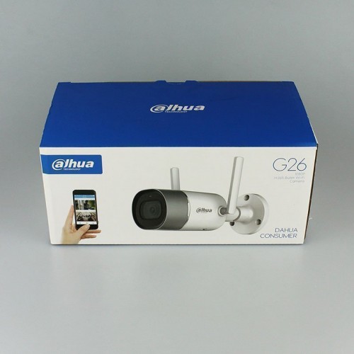 Dahua DH-IPC-G26P – IP камера цилиндрический корпус которой имеет степень защиты от атмосферных осадков, резких перепадов температур и влажности IP67. Степень защиты IP67 означает, что камера имеет полную защиту от попадания пыли и грязи. IP камера Dahua DH-IPC-G26P имеет фиксированный объектив 2,8 мм., с углом обзора 110 град, по горизонтали. Максимальное разрешение картинки 2MPix (1920х1080p) при 25 к/с. Встроенная ночная ИК-подсветка обеспечивает камере видимость в полной темноте на расстоянии до 30 метров. Из дополнительных опций хочется отметить наличие Wi-Fi модуля и внешней антенны, благодаря которым, камера может подключаться к беспроводной сети на расстоянии - до 50 метров. Наличие слота для MicroSD карты памяти (до 128Gb), позволяет сохранять снимки и видео на карту памяти. Питание устройство получает от внешнего блока питания DC 12В. Так же в камере встроенный микрофон.