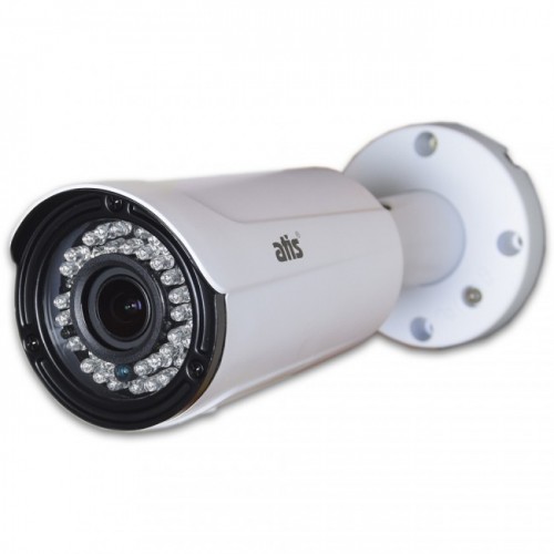 Цилиндрический антивандальный корпус уличной камеры ATIS AMW-1MVFIR-40W/2.8-12 выполнен из прочного металлического сплава. Класс защиты IP66 (система классификации степени защиты оболочки электрооборудования), что означает надежную защиту внутренних компонентов от попадания пыли и влаги (RH95% Max), а также устойчивость к перепадам температур (-30°C ~ +60°C).